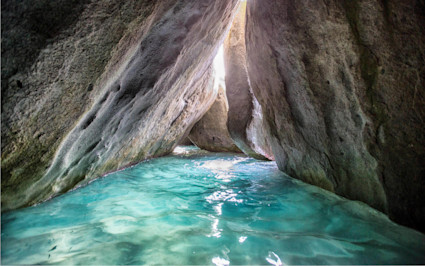 | Insider tip: Wear water shoes and bring a dry bag — the hike through The Baths is through slippery stone surfaces. |