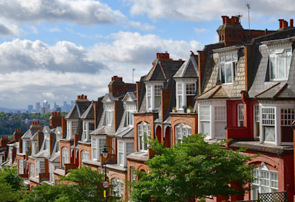 An image shows a show of high-end homes in Hampstead, one of the many posh areas in London.